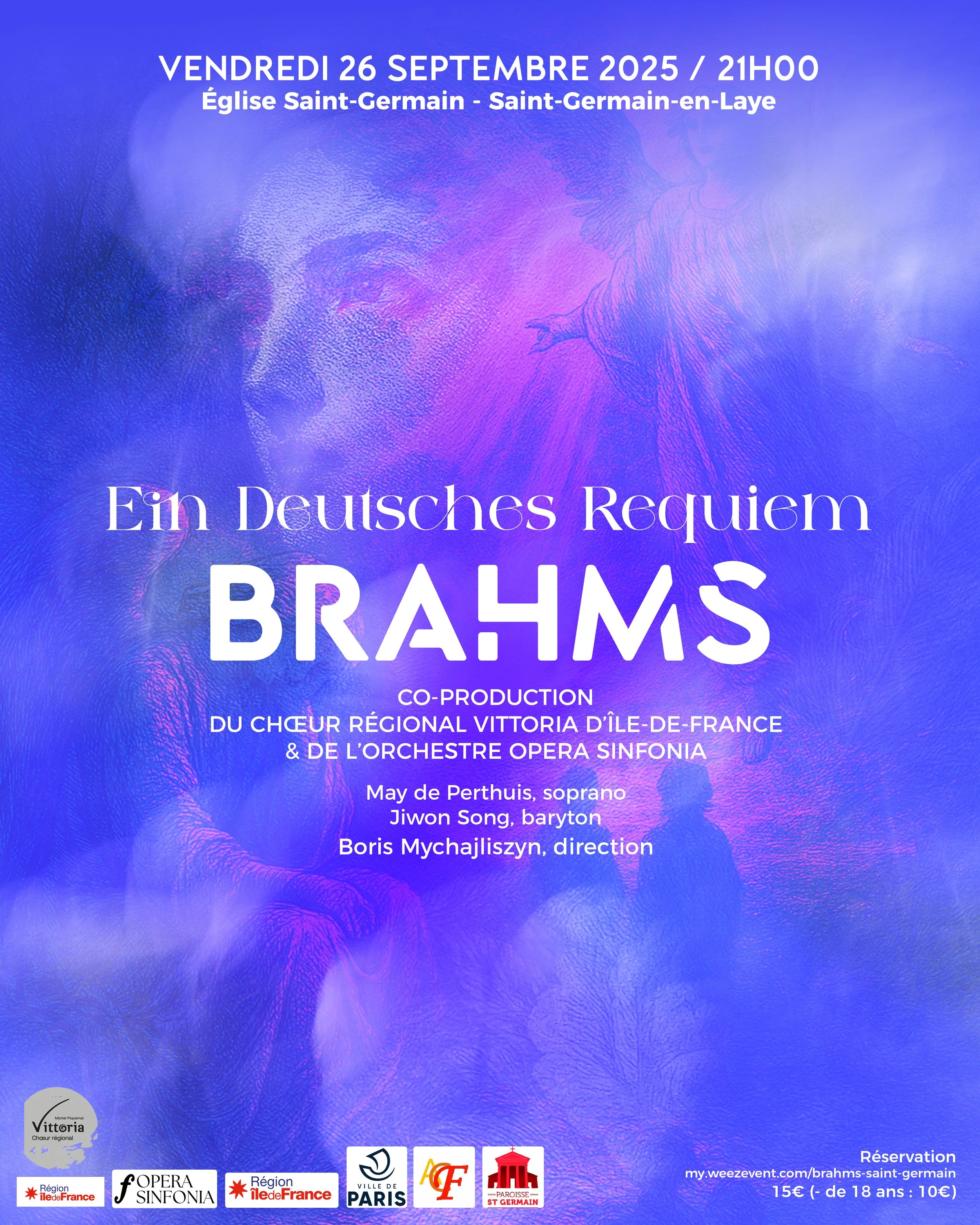 Opera Sinfonia et le Chœur régional Vittoria d'Île-de-France, placés sous la direction de Boris Mychajliszyn, vous proposent de découvrir l’un des chefs-d’œuvre les plus bouleversants du répertoire. Composé après la perte de sa mère, Brahms y déploie toute la richesse de son écriture, mêlant puissance dramatique et profond apaisement.